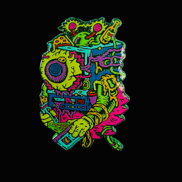 Gunky is two inches, glows in the dark and shines in an epoxy coating. The metal is green anodized and on the back you'll find that it is double posted, numbered and name stamped. The Gunkmeister is also limited to 50 pieces.